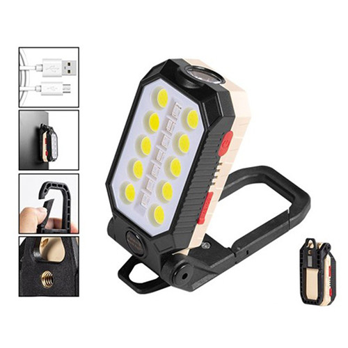 چراغ کمپینگ شارژی مدل W599B چند حالته با ابعاد 13×4×3 سانتیمتری و وزن تقریبی 225 گرمی برای استفاده در داخل چادر کمپینگ نیز بسیار مناسب است. با قلابی که دارد، به راحتی به هرجایی که نیاز دارید آویزان می شود و همچنین دارای آهنربا به منظور اتصال به سطوح فلزی نیز میباشد. پایه این چراغ دارای پیچ مخصوص سه پایه عکاسی نیز هست.