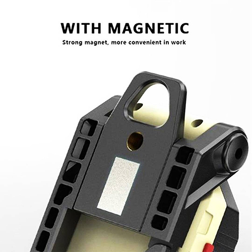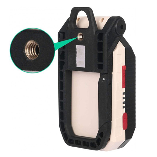چراغ کمپینگ شارژی مدل W599B چند حالته با ابعاد 13×4×3 سانتیمتری و وزن تقریبی 225 گرمی برای استفاده در داخل چادر کمپینگ نیز بسیار مناسب است. با قلابی که دارد، به راحتی به هرجایی که نیاز دارید آویزان می شود و همچنین دارای آهنربا به منظور اتصال به سطوح فلزی نیز میباشد. پایه این چراغ دارای پیچ مخصوص سه پایه عکاسی نیز هست.