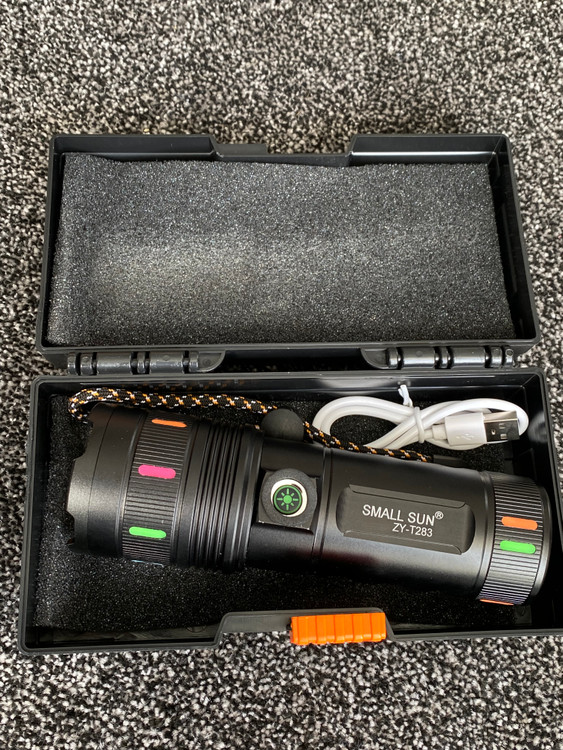 چراغ قوه Small Sun ZY-T283, کابل شارژ USB-C, بند, جعبه