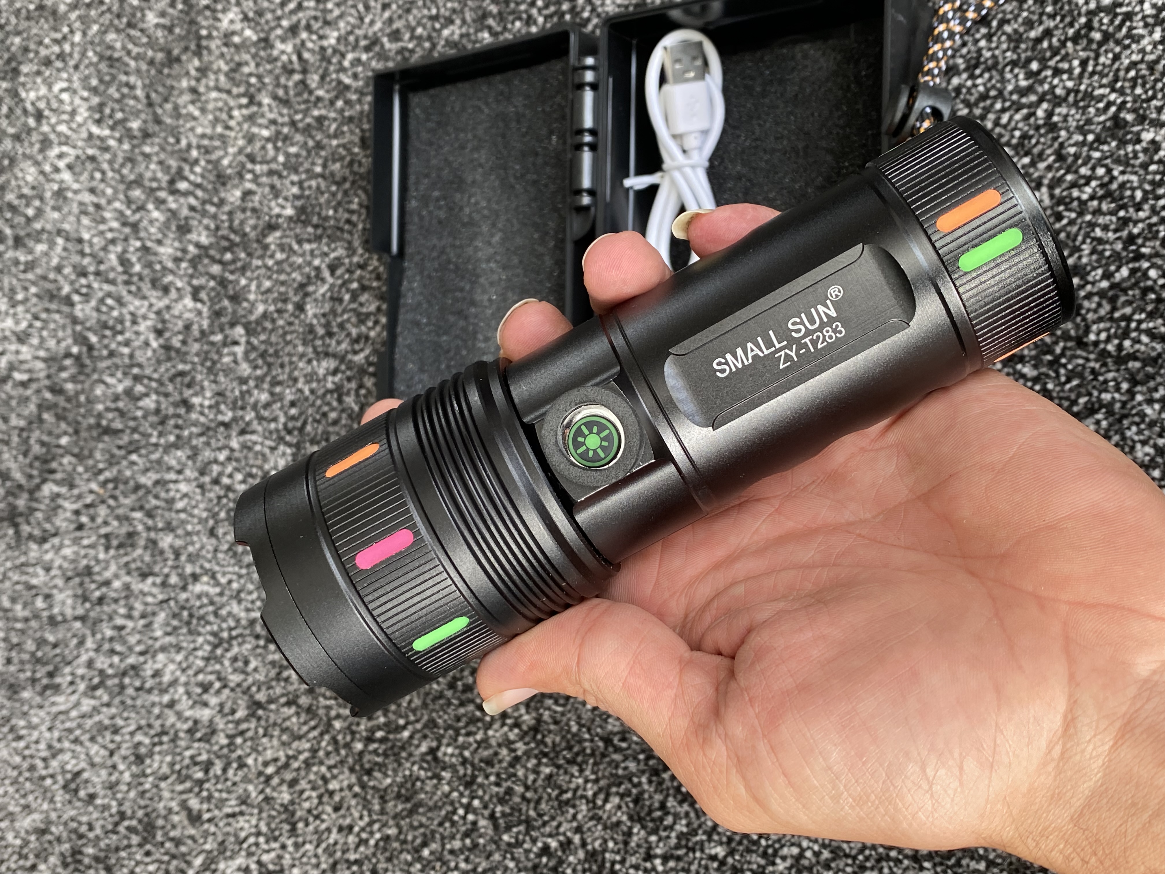 چراغ قوه Small Sun ZY-T283, کابل شارژ USB-C, بند, جعبه